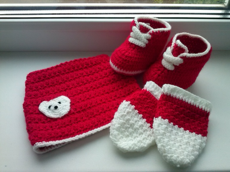 Мне очень понравилось вязать из плюшевой пряжи,пока тренировалась на малыше,но думаю скоро уже перейду на сыночков старших,так как уже просят "свяжи нам что-нибудь тепленькое".Обделять не буду,правда хочется что-то связать.А пока на ваш суд следующее.Идею комбинезона нашла на просторах ББ,только немного видоизменила.А как можно оформить сапожки ?Подкиньте идейки.