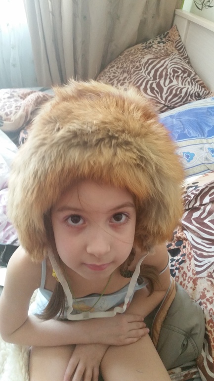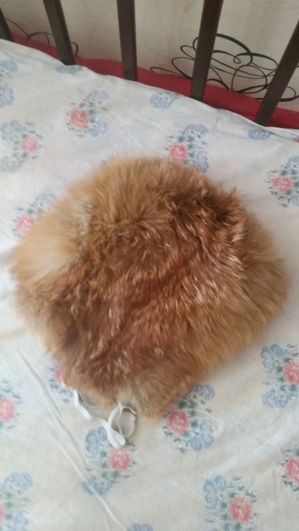 Шапка натуральный мех (вроде лиса), нам ее подарили сшили спецально для нас, но мы так и не носили. (Забыли про нее) Пролежала на антресоли 6 лет.