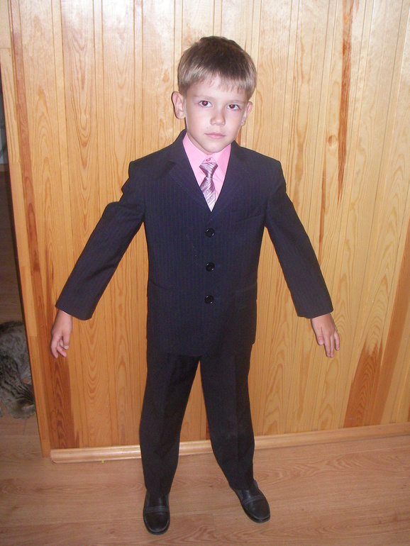 Был одет 4 раза на утренники и 1 сентября. Отлично смотрится. Отделан строчкой по краям лацканов и карманов. Пятен нет-блик. К костюму отдам рубашку розового цвета. Также есть туфли " Гномик" 28 раз. Пишите не пожалеете!