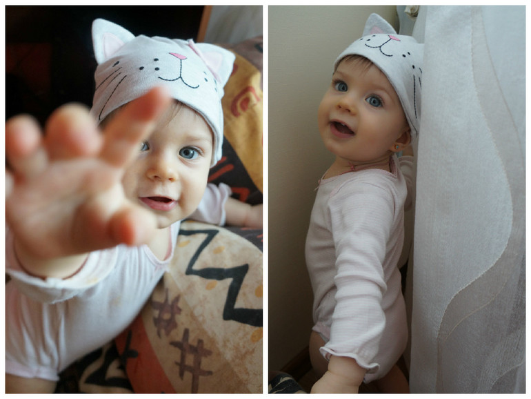 Это мы примеряем шапку от новых пижам. До самих пижам 9-12, надеюсь, к осени дорастем)) А вот шапка как раз сейчас.