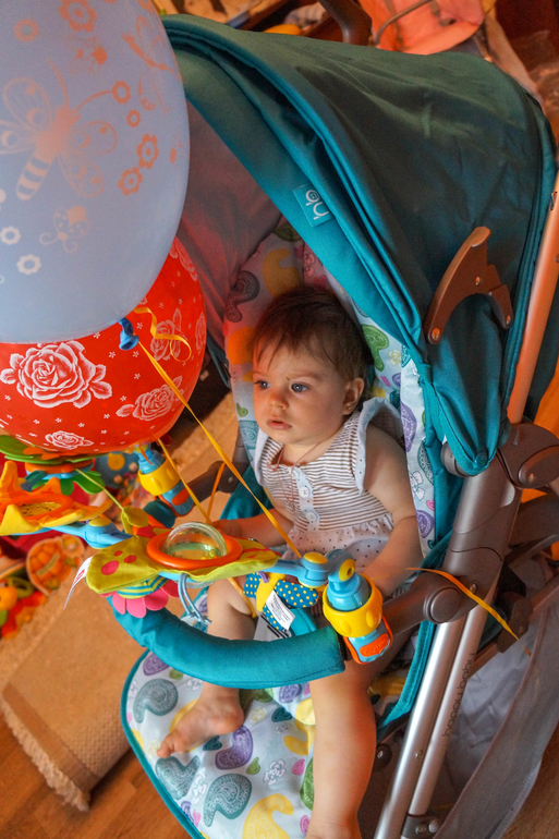 Наконец-то пришел наш коврик. Марьяша от него в восторге! Аж повизгивает)) Особенно нас очаровал вибрирующий слон