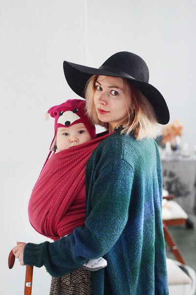 Мне кажется, что есть огромная разница между шарфами, сделанными "для мам" и "мамами". И даже среди второй категории особенно интересна стадия, когда это еще не превратилось в хорошо поставленный бизнес, а сохраняет очень много личного. Мне хотелось отечественных машинных шарфов, от начала и до конца придуманных теми, кто их носит. Поэтому анонс первых слингов-тестеров от Полотна вызвал у меня восторг и желание сразу же, немедленно это намотать... Мои мечты вообще часто сбываются, поэтому и стал возможен этот отчет :) А чтобы счастье было полным, фотографировала нас в шарфе Таня diza80.