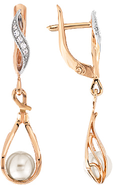 Серьги выполнены их красного, желтого, белого золота и серебра, а также искусно украшены фианитами, бриллиантами, жемчугом, топазом, гранатом и другими драгоценными камнями.