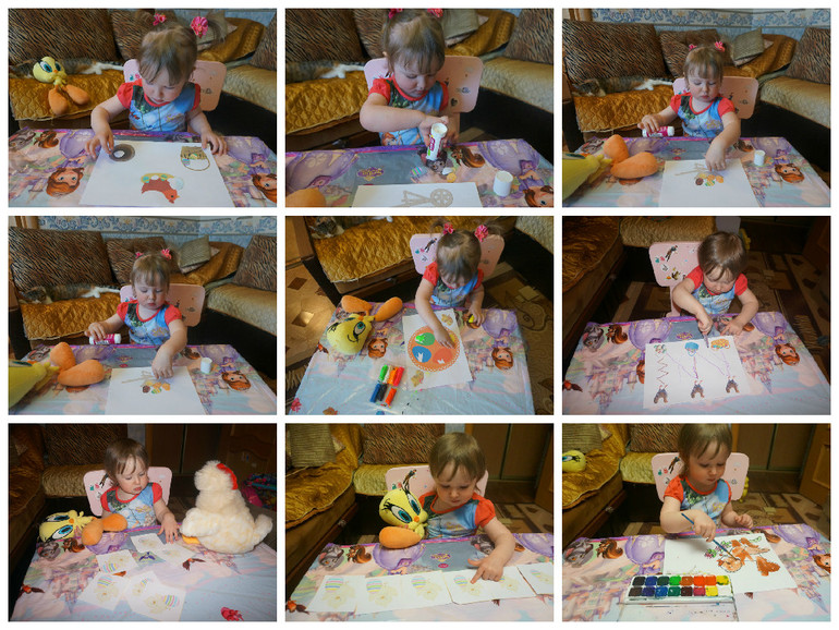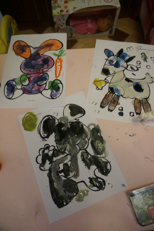 так как проект закончился, то мы разрешили Софии раскрашивать картинки любым цветом, и вот что из этого вышло: