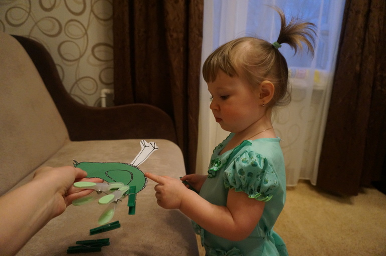 -сделали птичке хвостик. Сначала Соня так удивилась, где же хвостик, но потом вошла в азарт и сделала из прищепок не только хвостик, но и хохолок: