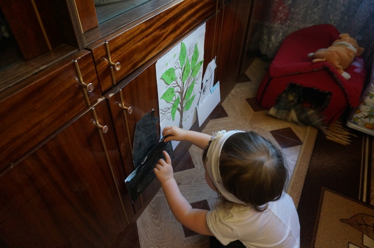 Вася решил не отставать от кота и случайно разбил яйца! София стала собирать треснувшие половинки. Но видимо мы были уставшие, и стали хулиганить, разбрасывать и мять их. Попробую вечером повторить задание.