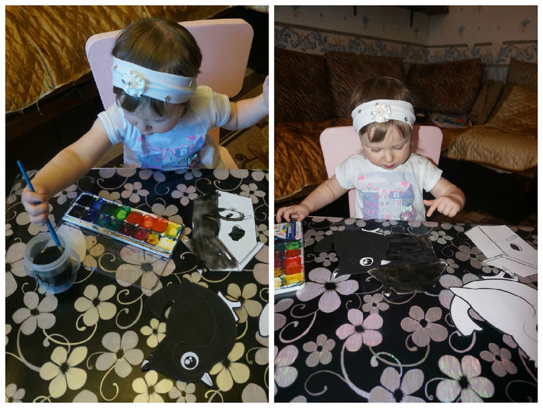 Дальше мы пошли разукрашивать домик для черной птички, т.к. София наотрез отказалась поселять черную птичку в белый домик.