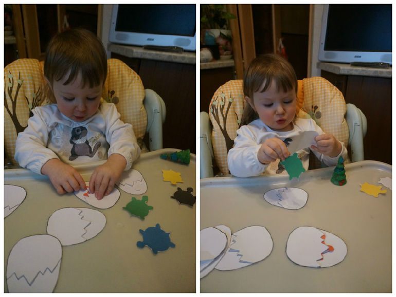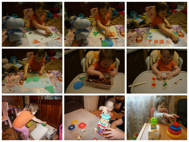 1. На момент игр моей дочурке исполнилось 1,8 мы. Мы были знакомы с основыными 5-фигурами: круг, квадрат, треугольник, звездочка и сердечко. Ведь эти фигуры присутствуют в каждом "сортере". Но как говорится: "повторенье-мать ученье". Очень интересные были игры с палочками, с саванной, сортировку мы вообще полюбили всей душой.