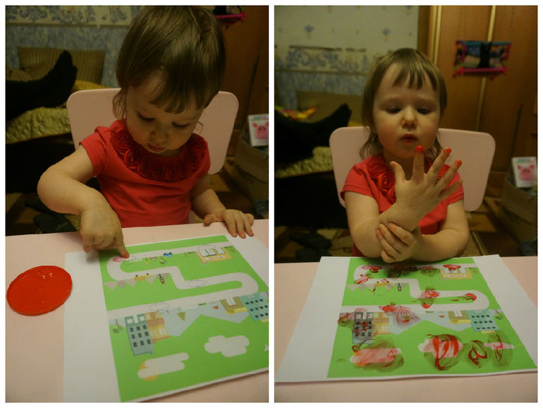 Рисование пальчиковыми красками машин на улице, тоже превратилось во что-то странное. Вместе с машинами было покрашено все остальное: облака, дома и сама улица: