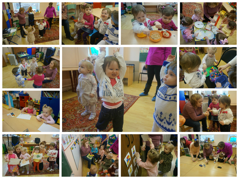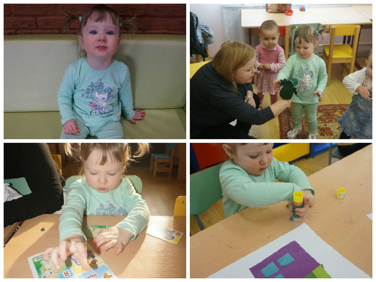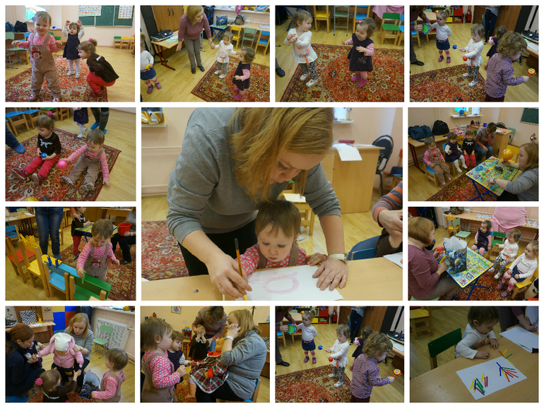 Далее мы собрались и отправились в БейбиКлуб. Сегодня там все были в разных одеждах, да и задания в основном были цветные, поэтому коротко о занятиях: