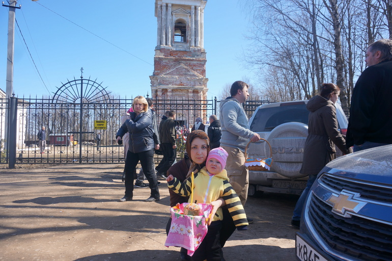 Ближе к обеду мы поехали в церковь. Отстояли часть службы, прошли причащение и освятили наши куличи с яйцами.