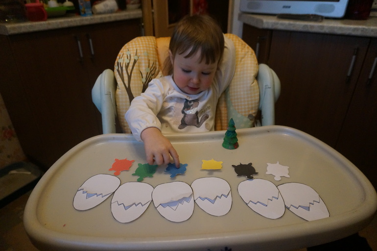 Самым сложным для нас оказалось разложить цыплят по мере их роста. Пришлось помочь. А вот ответы на вопрос: где самый большой/маленький/средний цыпленок, не вызвали у Софии затруднения.