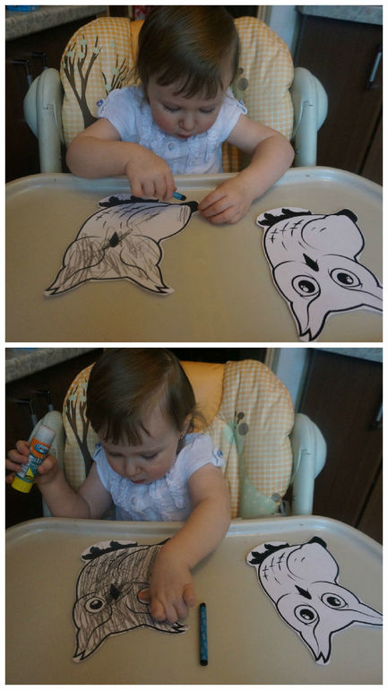 Фильку мы сегодня красили карандашом. Я никак не отойду от стресса, вчера мы красками испортили новую футболку. Приклеили ему глазки и полетали по комнате: