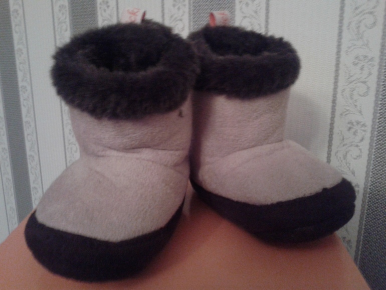 Новые валенки пинетки на искусственном меху, привезенные в США. Сзади липучка сверху и до пятки, чтобы удобно одевать было. Для дома лучше не придумаешь.