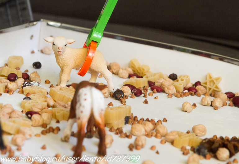 А наш находчивый папа пошел еще дальше, и, оставшись с ребенком, предложил ему перетаскать всех зверей, а потом еще и миску макаронин для них из кухни в комнату! Девочки, из кухни в комнату!!!