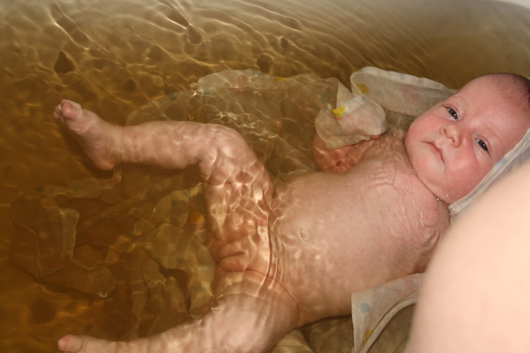 Постепенно налаживаем купание, поняли почему малышка орала - мы ее просто варили в температуре выше 45 градусов. Ну мерили воду по-старинке локтем, думали, что это надежно. Теперь приспособили под это дело электронный градусник для тела. Купание сразу пошло веселей, уже не орем и даже не скулим от страха. Анькина мордашка хоть еще и выражает ужас, но уже не такой дикий.