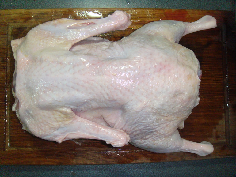 Удалять кости из птицы вообще-то несложно. Вот тут видеоролик по Удалению костей из утки. Но сначала надо утку разморозить, вытащить потрошки: