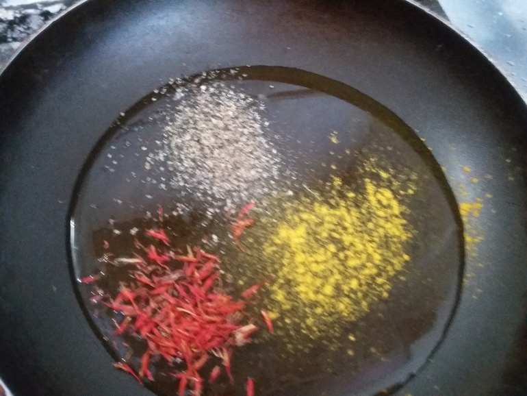 Покрошить 4 лавровых листика, положить черный перец, соль: