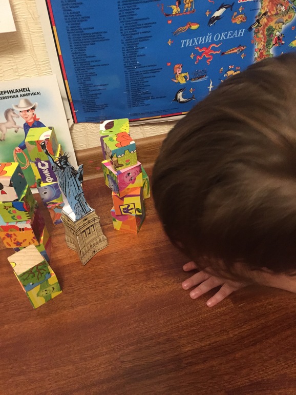 Потом отправились в NY построили небоскреб из кубиков поставили в центр статую свободы.