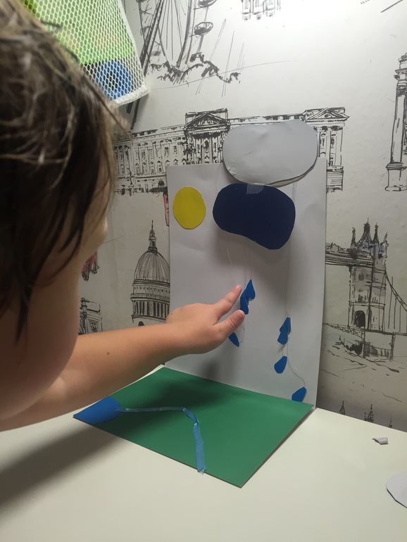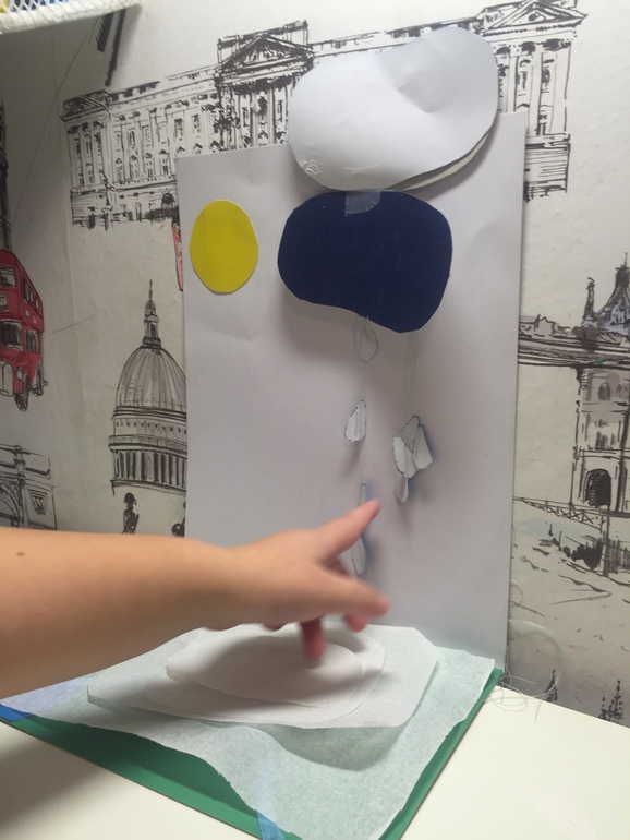 я подготовила модель круговорота воды в природе и мы попытались посмотреть как тучка из белой становиться темно синей,
