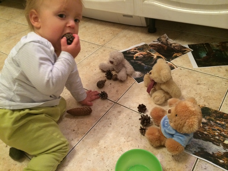 Шишки, очень мы уважаем шишек. Матвей их грыз и раскидывал, собирать не удавалось, слишком интересный материал.