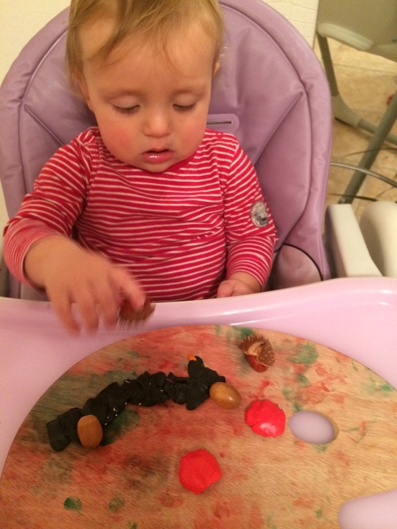Пластилиновые заплатки. Сделал много маленьких пластилиновых кружков, лепили их с Матвеем, немного он сам, потом принялся отрывать, даже попробовал.