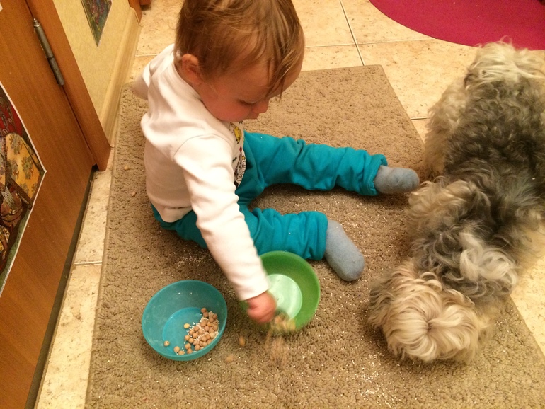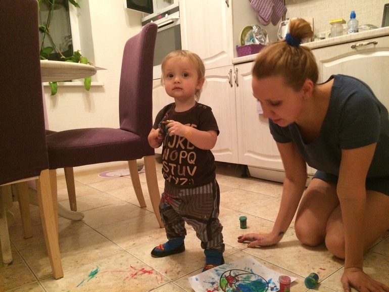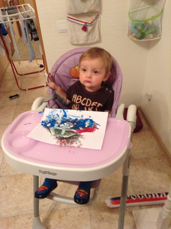 Потом я добавила ему туда кружечку воды, Матвей продолжил работу. Я вообще не видела его чем-то столь увлеченным (кроме шкодничесва) такое долгое количество времени.