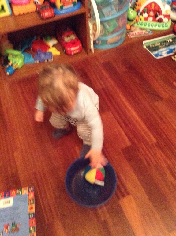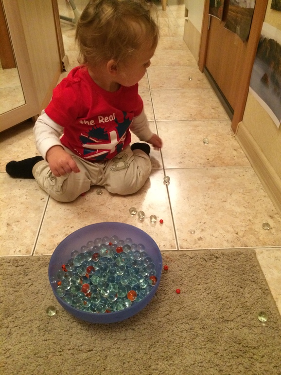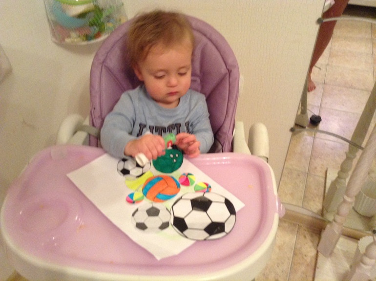 Покатали мячик от меня к Матвею, и обратно. Матвей кидал их мне.
