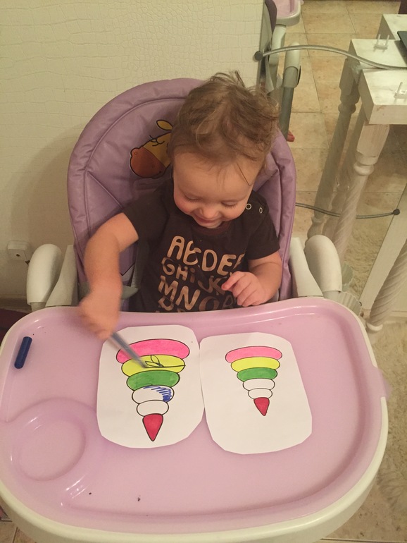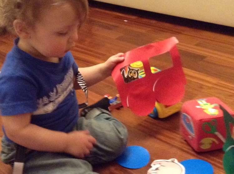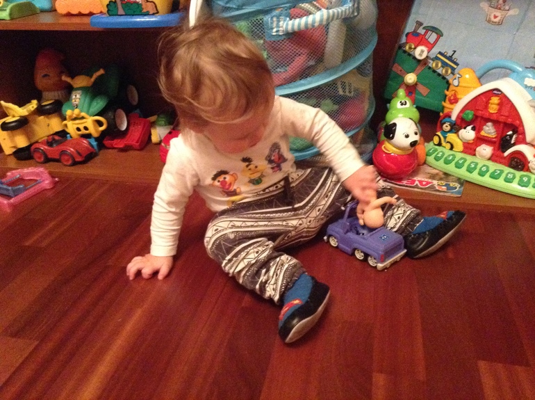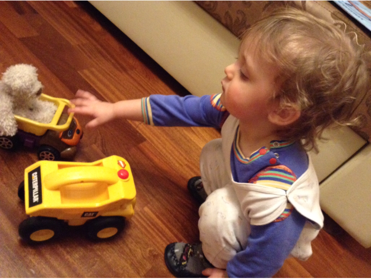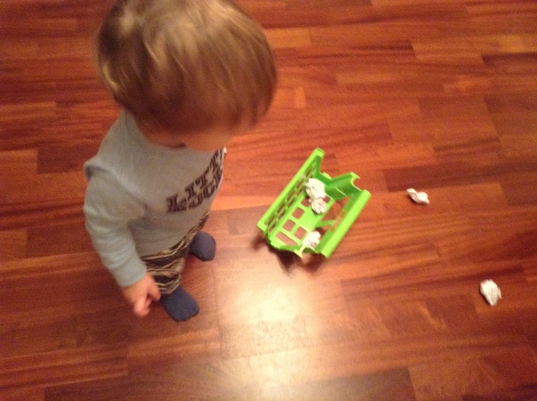 Попробовали еще раз разложить шарики по цветам из кузова грузовичка. но Матвей был не преклонен.