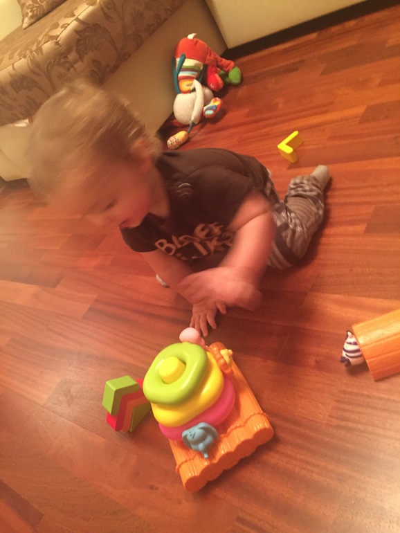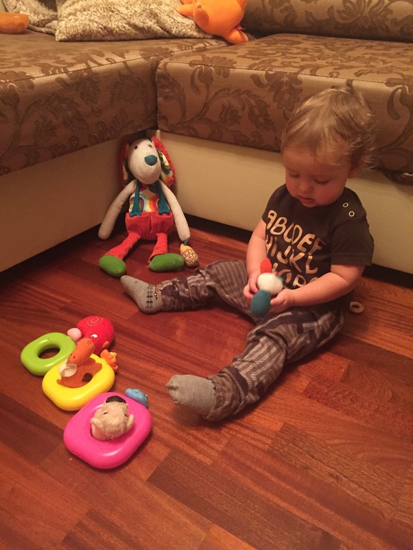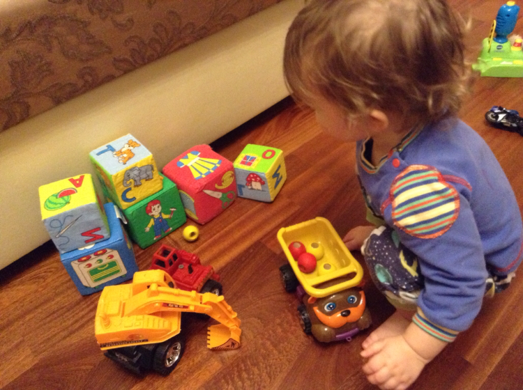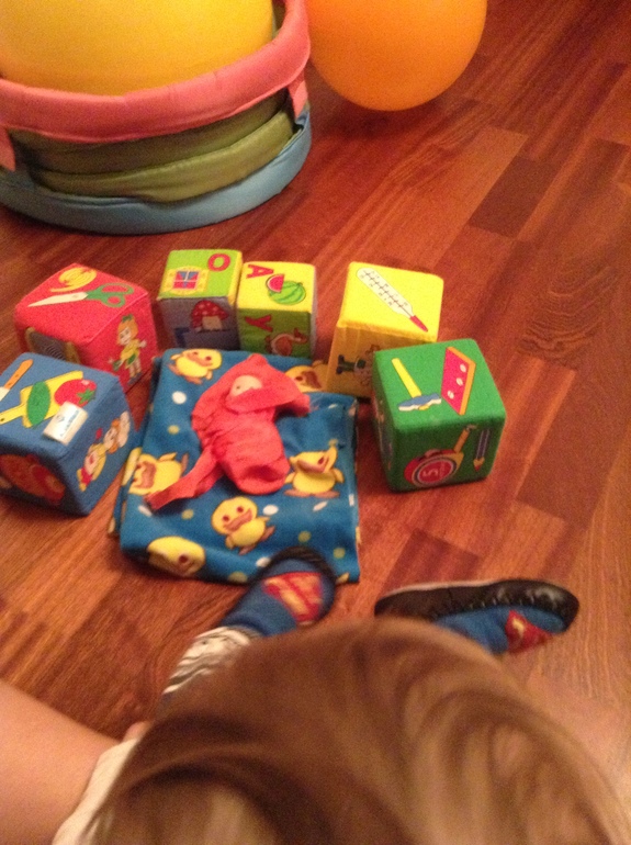 потом правда стал разбирать)) Попытались рассортировать кубики на большие и маленькие, но Матвея Это не увлекло.