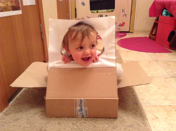 Из подручной коробки попытались организовать самолет( самолет пользовался популярностью, часа 3 пока не развалился.![]()