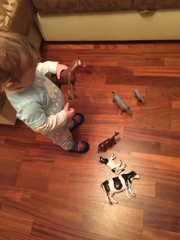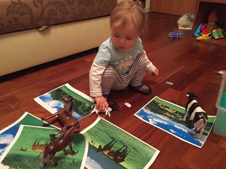 Посмотрели с Матвеем мультфильм раза 4))). Спели песенку, достали домашних животных, что бы спеть с ними.