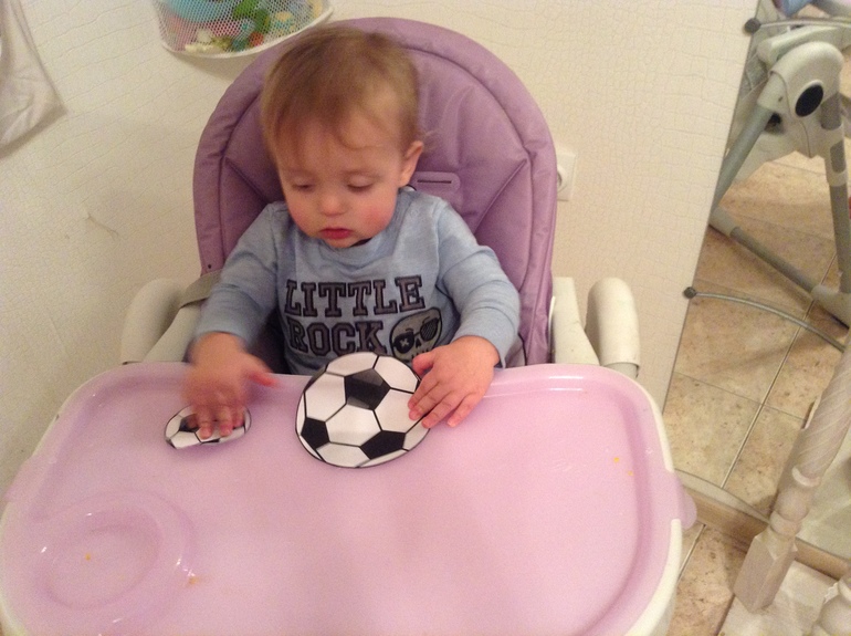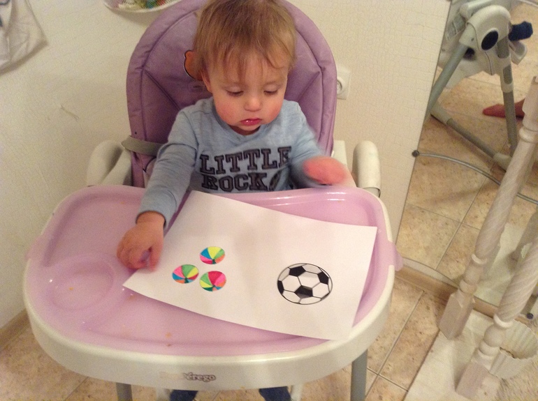 Искали большой и маленький футбольный мяч, тоже не справились, но мячи футбольные очень нам понравились.