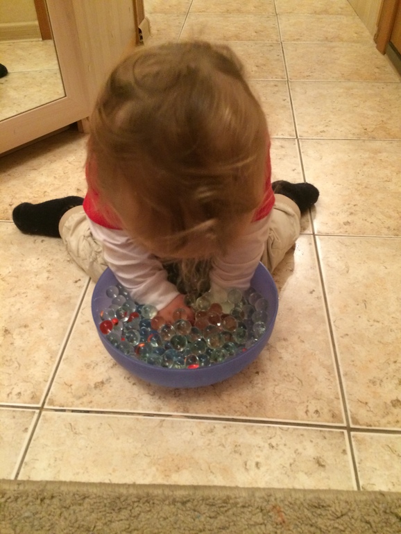 Я планировала провести это занятие в ванной, но прививка не позволила. Поэтому игры с водой тоже были осторожными.