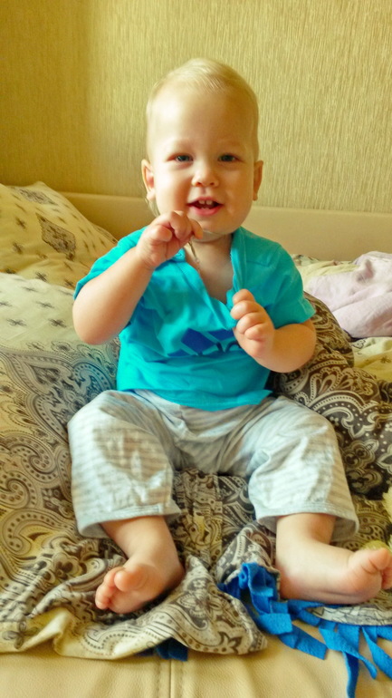 Любит гулять, сам раскачивается на детских качалках ( на пружинке, такие), с горки головой вперед, обожает залезать на горки по ступенькам, а дома залезать и слезать с дивана. Буквально вчера освоил залезание на стул. Залез, встал, а слезть не знает как, меня зовет