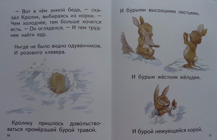 11) Эту книгу нельзя назвать зимней в строгом смысле. Она о многих моментах в дружбе главных героев, в том числе и о зимнем периоде. Сказки о Ежике и Кролике. Здесь настолько милые персонажи, что я не могла ее не приобрести для Глеба, тем более она зарекомендовала себя, как книжечка для обучения чтению у деток. Вышла в серии "Читаем сами". Крупный шрифт, ударения - все как должно быть для первых книжечек по чтению. Сначала я буду читать сама, ну а в 4-5 лет уже он будет стараться читать мне.:-) Знаю, были отдельные книжечки про Кролика и Ежика, но они закончились и были переизданы уже в данном формате, где собраны несколько историй.