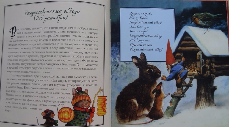 9) Продолжая тему гномов, я взяла еще одну книжечку с их участием. Рождество гномов. Сначала пожалела о покупке, ведь я не собиралась говорить Глебу о несуществующих человечках, но книга настолько красивая, что я успокоилась - ее надо иметь в библиотеке. Книжечка - руководство к тому, как провести подготовку к празднику по-гномовски. Ну и к сожалению, ее уже раскупили. Немудрено, она одна из красивейших зимних книг в нашей детской библиотеке.