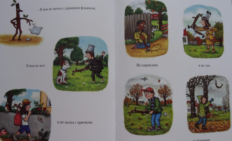 5) Хит-парад зимних книг начну с истории про палочку Человеткин . Над книгой работал знаменитый дуэт Дональдсон и Шеффлер. У нас практически все книги этих авторов, они прекрасны и я думаю, Глеб оценит каждую в свое время. Сюжет в стихотворной форме про вынужденное путешествие Человеткина, живой палочки.