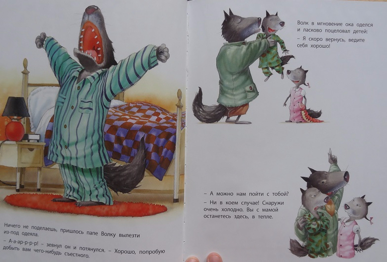 2) Не могла не взять и другую книгу Густафсона Классические сказки на ночь. Это продолжение первой книги, ни на капельку не уступает ей по оформлению. Тоже огромного формата и тяжеловесная. В нее вошли: Сказка о городском и деревенском мышатах, "Спящая Красавица", "Черепаха и Заяц", Сказка о тиграх и Малыше Самбе, "Бременские музыканты", "Три козлика по имени Граф", "Лев и Мышь", "Джек и бобовый стебель". Хотела бы пояснить, что не обязательно ждать определенного возраста малыша, чтобы насладиться книгой. Можно вольно рассказывать сказки от себя , опираясь на иллюстрации, а когда малыш подрастет, то можно будет непосредственно прочитать сказки и увидеть разницу.