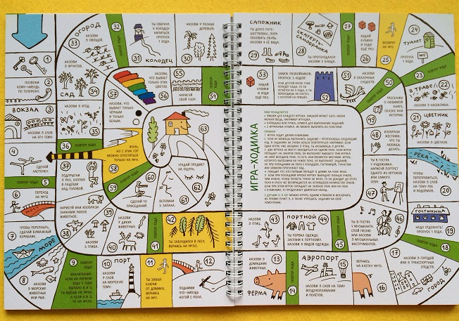 Очень интересная книга и тоже необычная для Виммельбухов, в ней много заданий, можно не только рассматривать, но и создавать игры на основе заданий, написанных внутри. Формат: супер толстая картонная обложка и очень плотные страницы внутри.