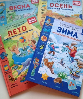 3) Бьянка Минте-Кениг: Осень. Зима. Весна. Лето Находилки-развивалки. ФГОС . Для 2 -летнего возраста. Картонные обложки, но уже мелованная бумага внутри, а не картон.