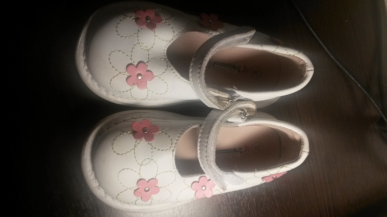 Туфли белые. Кожа внутри. 24р. Одели в квартире 1 раз. Эк 1000р