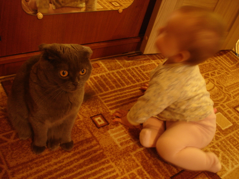 А эта фотография наглядно отражает душевное состояние домашнего животного, находящегося в заложниках у ребёнка!