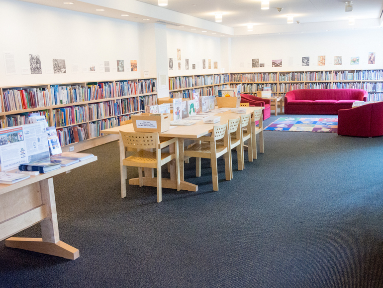 В центральном зале была выставка работ David Macaulay, вся выставка была посвящена единственной книге - "Белое и черное", награжденной золотой медалью Кальдекотта.