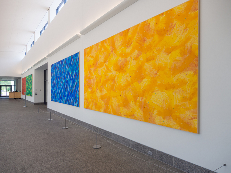 А еще стену украшают четыре полотна, созданных Эриком Карлом специально для этого музея. (У меня, к сожалению, начал барахлить фотоаппарат, и сфотографировать так, как хотелось бы, чтобы передать вам игру оттенков, не получилось)...
