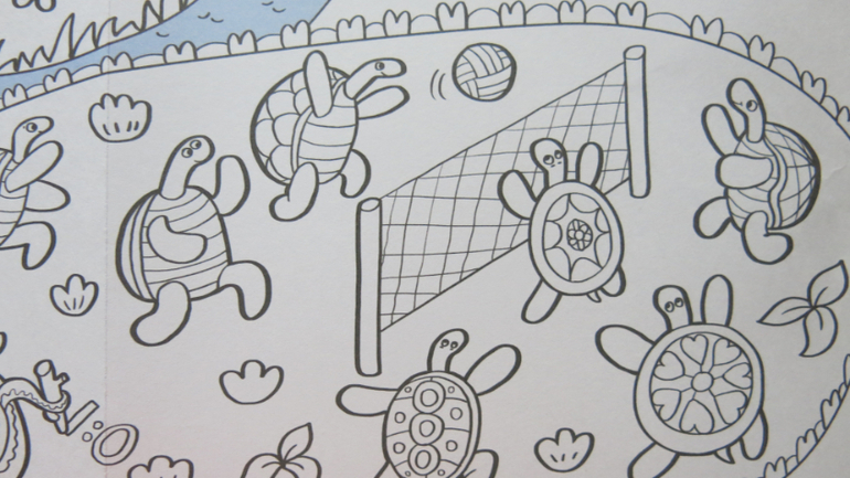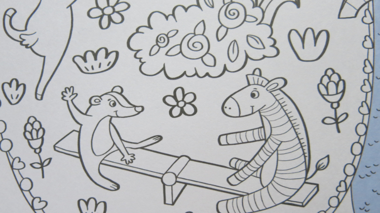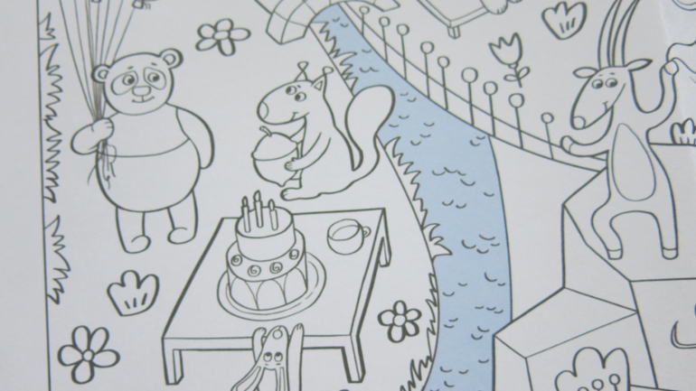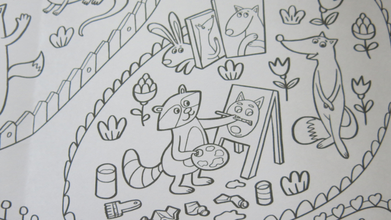 Раскраску можно разложить на полу или повесить на стену, чтобы рисовать, словно на мольберте. А результатом трудов украсить детскую комнату.