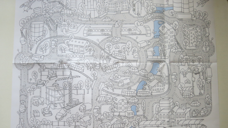 Мне кажется, Город будет очень классно в цвете смотреться на стене в детской, целая такая карта получается. Или можно потом разложить на полу и катать по нарисованным дорогам настоящие маленькие машинки!