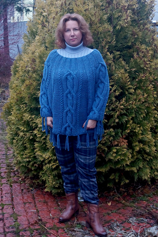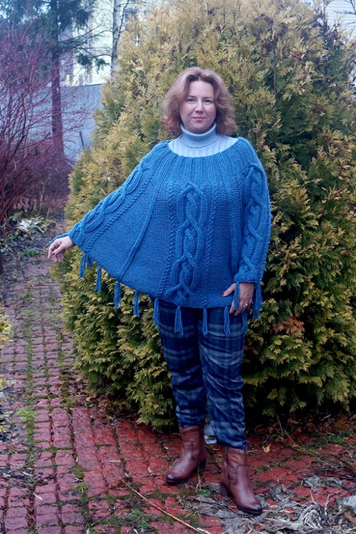 Ну и я теперь знаю с чем носить пончо, которое я связала лет 7 назад, еще в беременность))) и так ни разу и не надела...