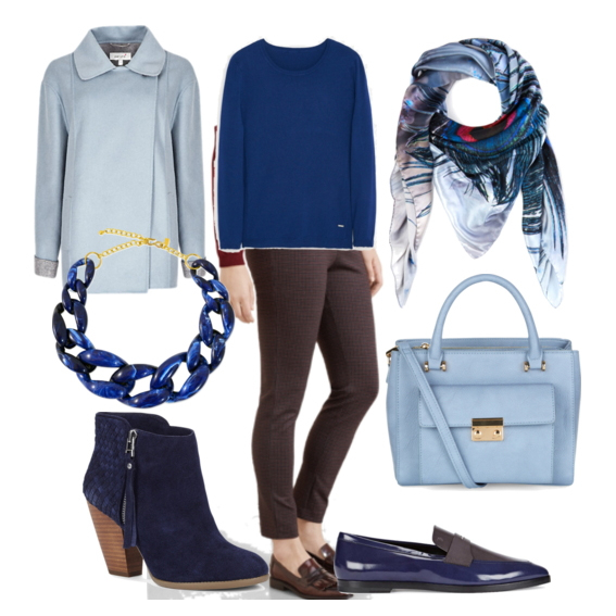 Голубой рубашки у меня пока нет, поэтому водолазка. Рубашку куплю, но чуть позже. На всё банально денег не хватило))) Равно как не купила пока и сумки. Их, конечно, до образа не хватает. Будут))) просто чуть позже. Я уже даже органайзер для них купила, чтобы легче менять было. Так что готовлюсь)))