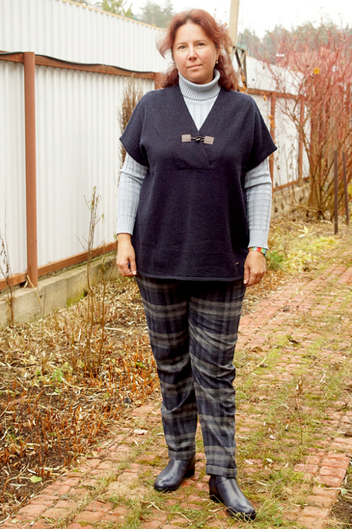С этими брюками оно мне не очень нравится, но переодеваться в джинсы лень было.
